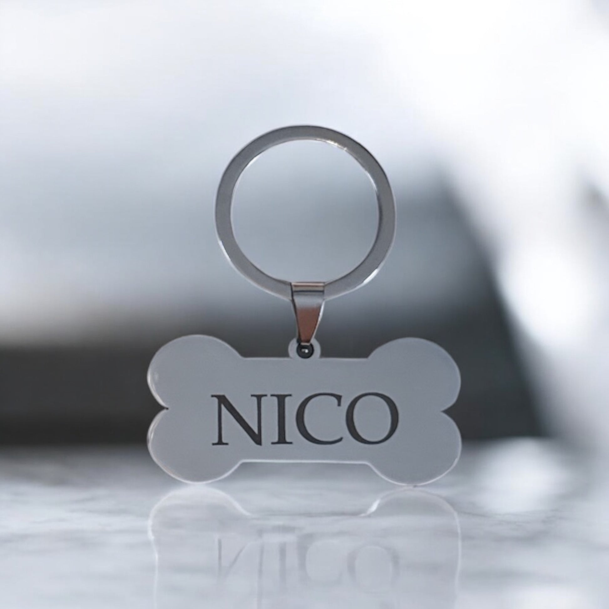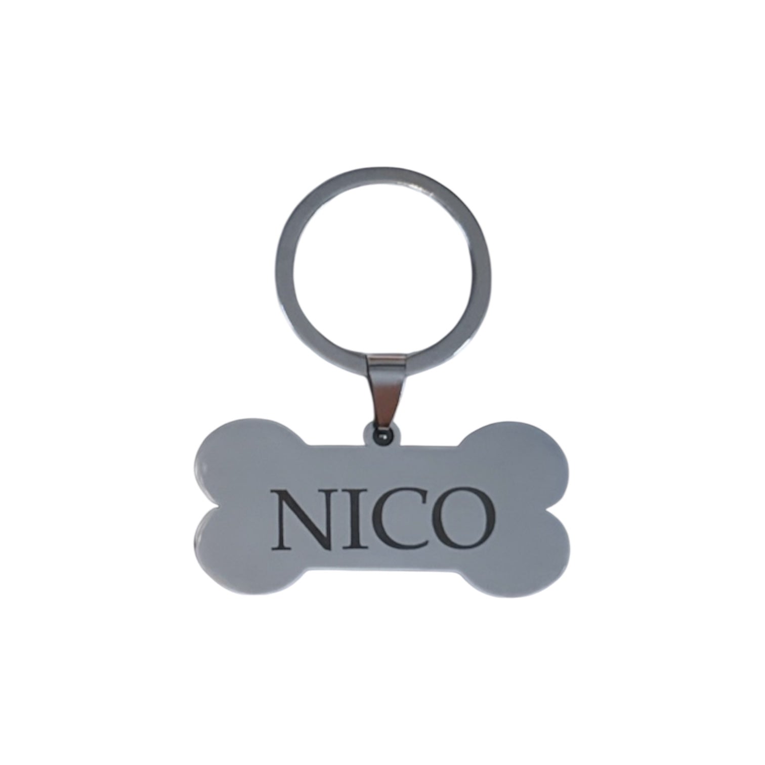 Dale un toque único a tu mascota con nuestro llavero en forma de hueso de acero inoxidable plateado, resistente y elegante. Personalízalo con el nombre de tu peludito o con el texto que desees mediante grabado láser de alta precisión.